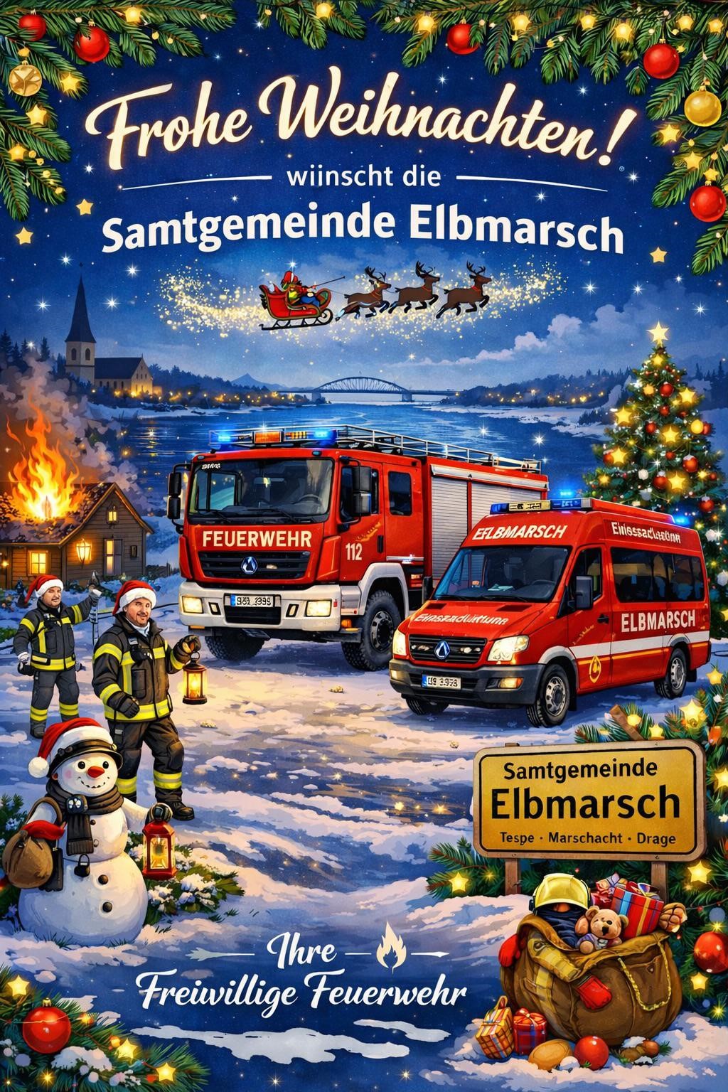 Frohe Weihnachten und besinnliche Festtage wünschen die Feuerwehren allen Bürgerinnen und Bürgern der Samtgemeinde Elbmarsch.