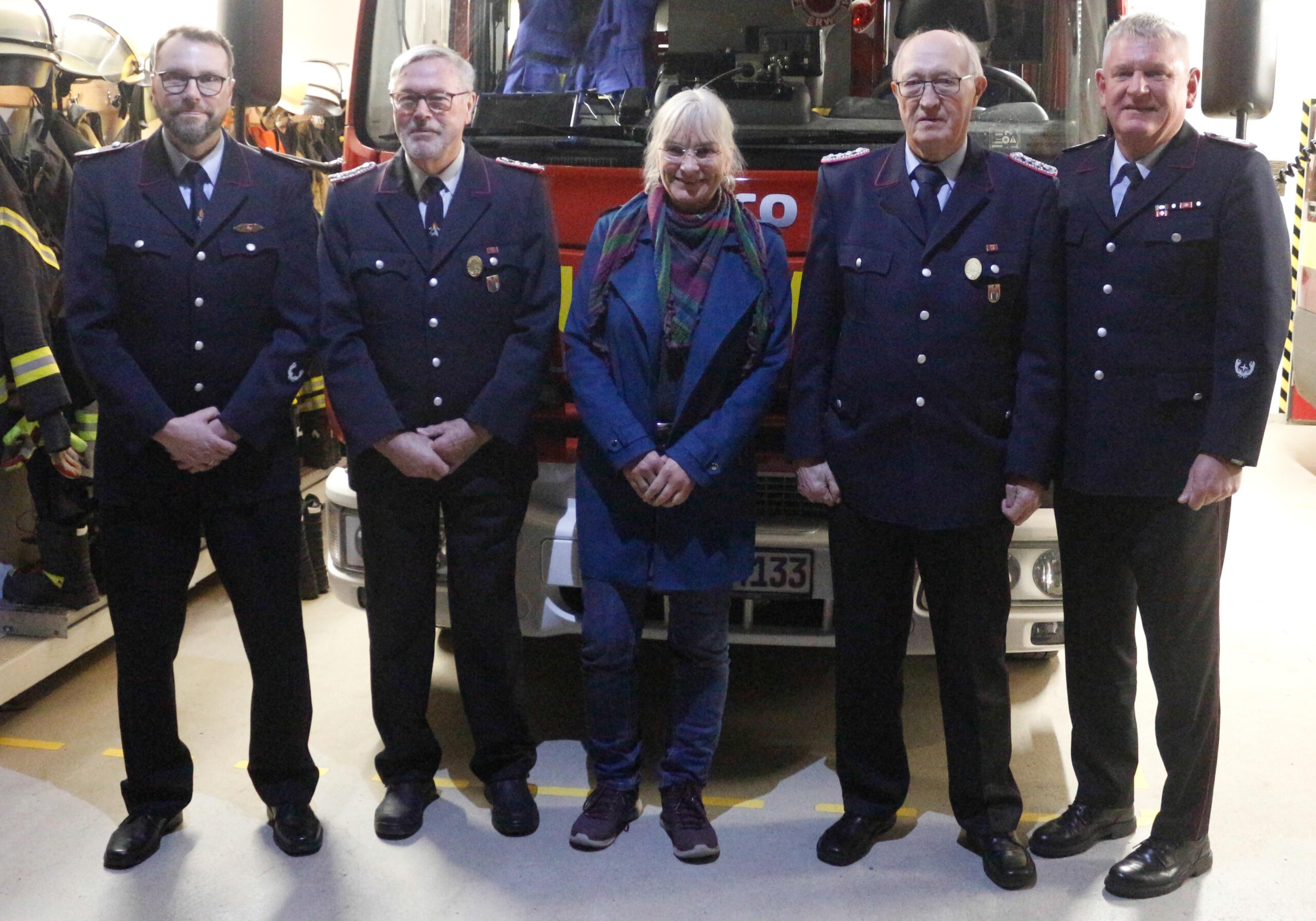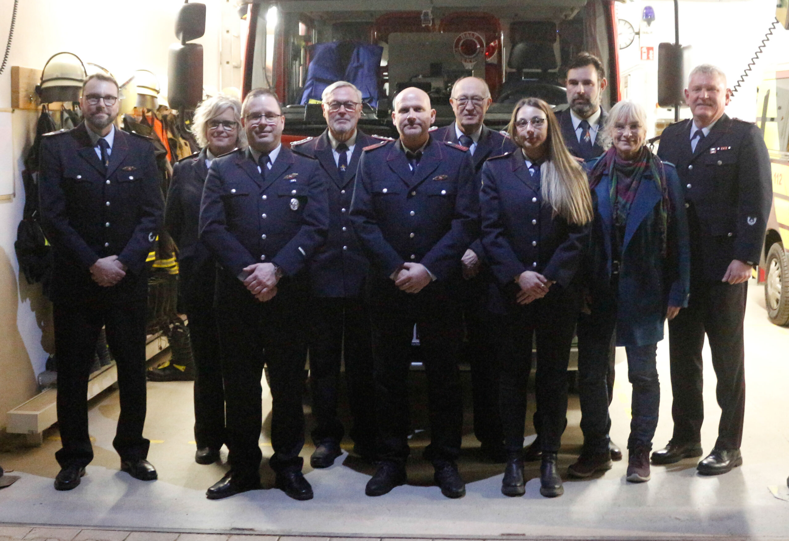 Beförderungen dann für sechs Kameraden und Kameradinnen. Sandra Wegner wurde zur Feuerwehrfrau, Sönke Schoth zu Hauptfeuerwehrmann, Eva Stock zur 1. Hauptfeuerwehrfrau, Stefan Schröder zum 1. Hauptfeuerwehrmann, Torben Krützmann zum 1. Hauptbrandmeister und Ortsbrandmeister Matthias Baumstark zum Brandinspektor befördert.